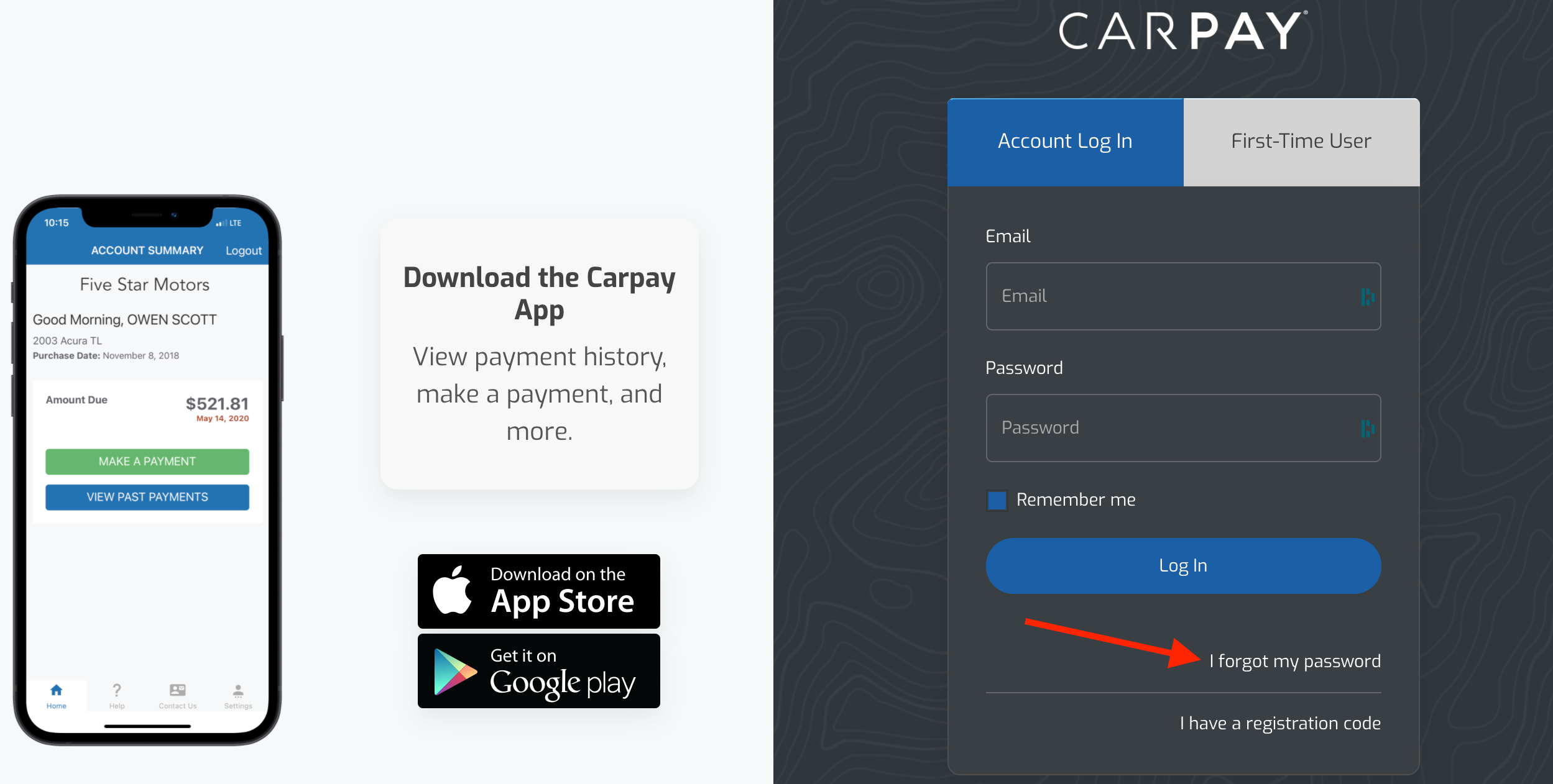 Go to https://pay.carpay.com and click on “I forgot my password.”